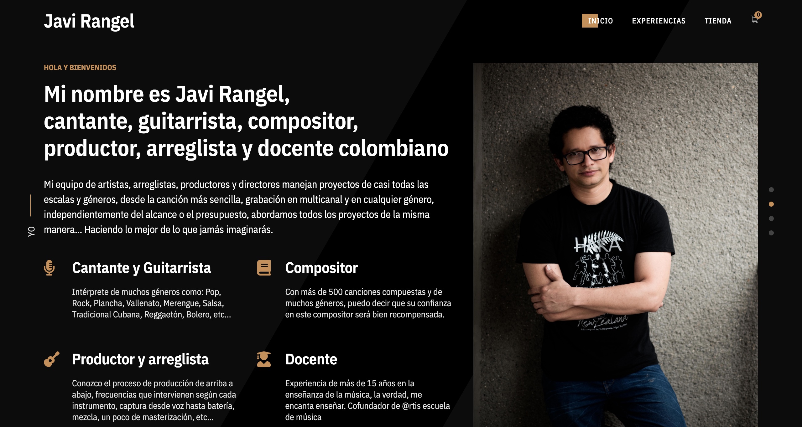 Javi Rangel es una página que busca mostrar la información pertinente de un artista musical.